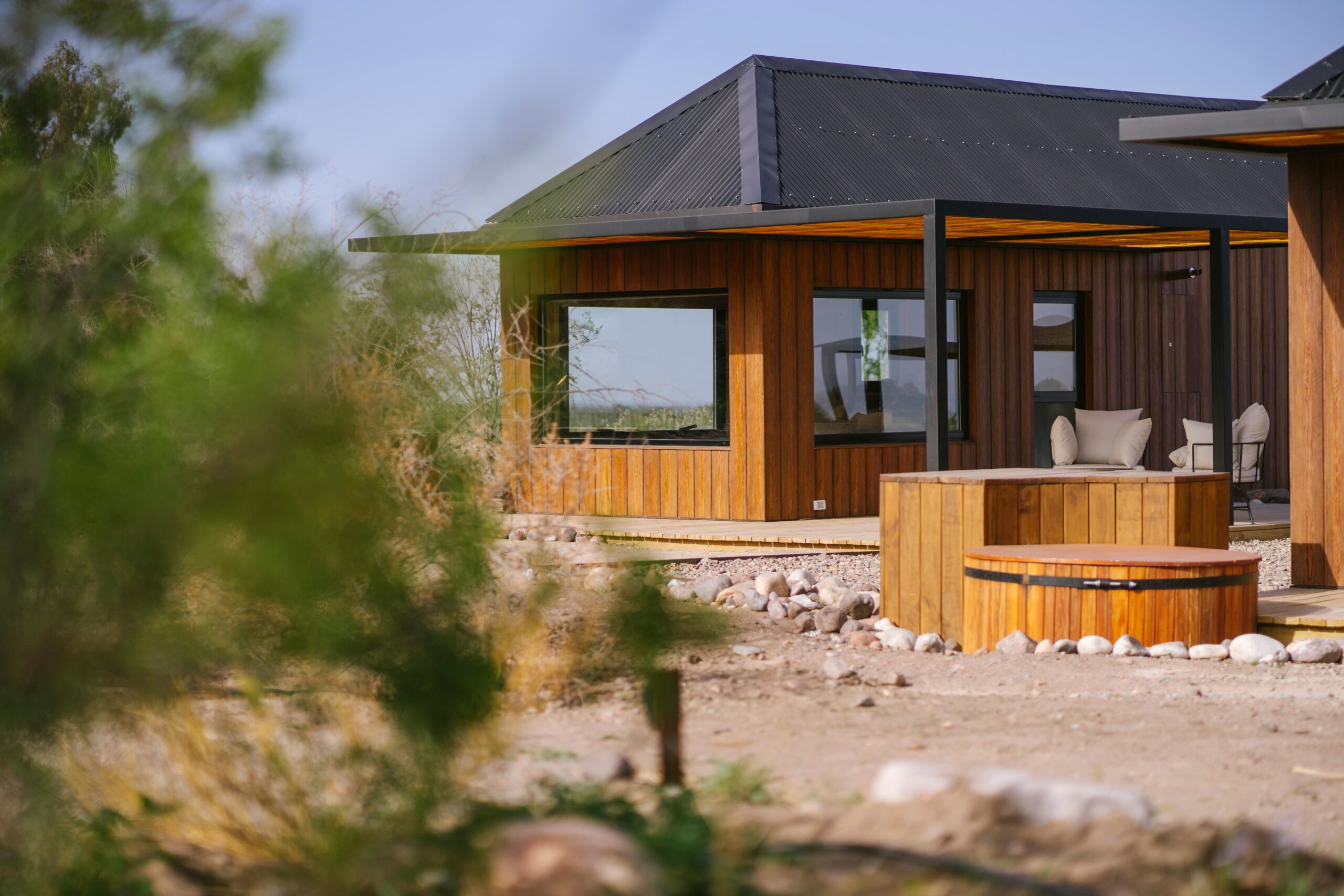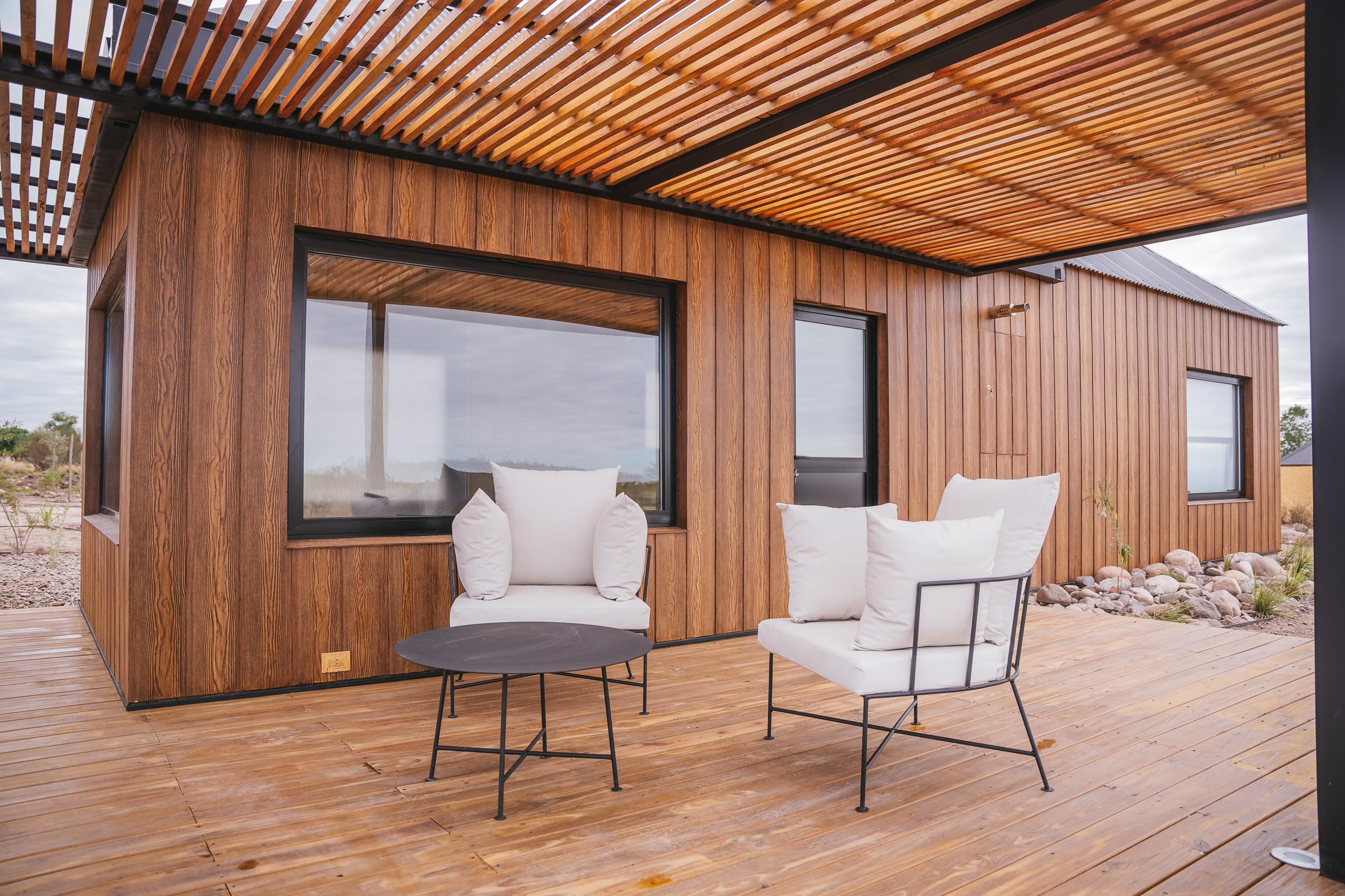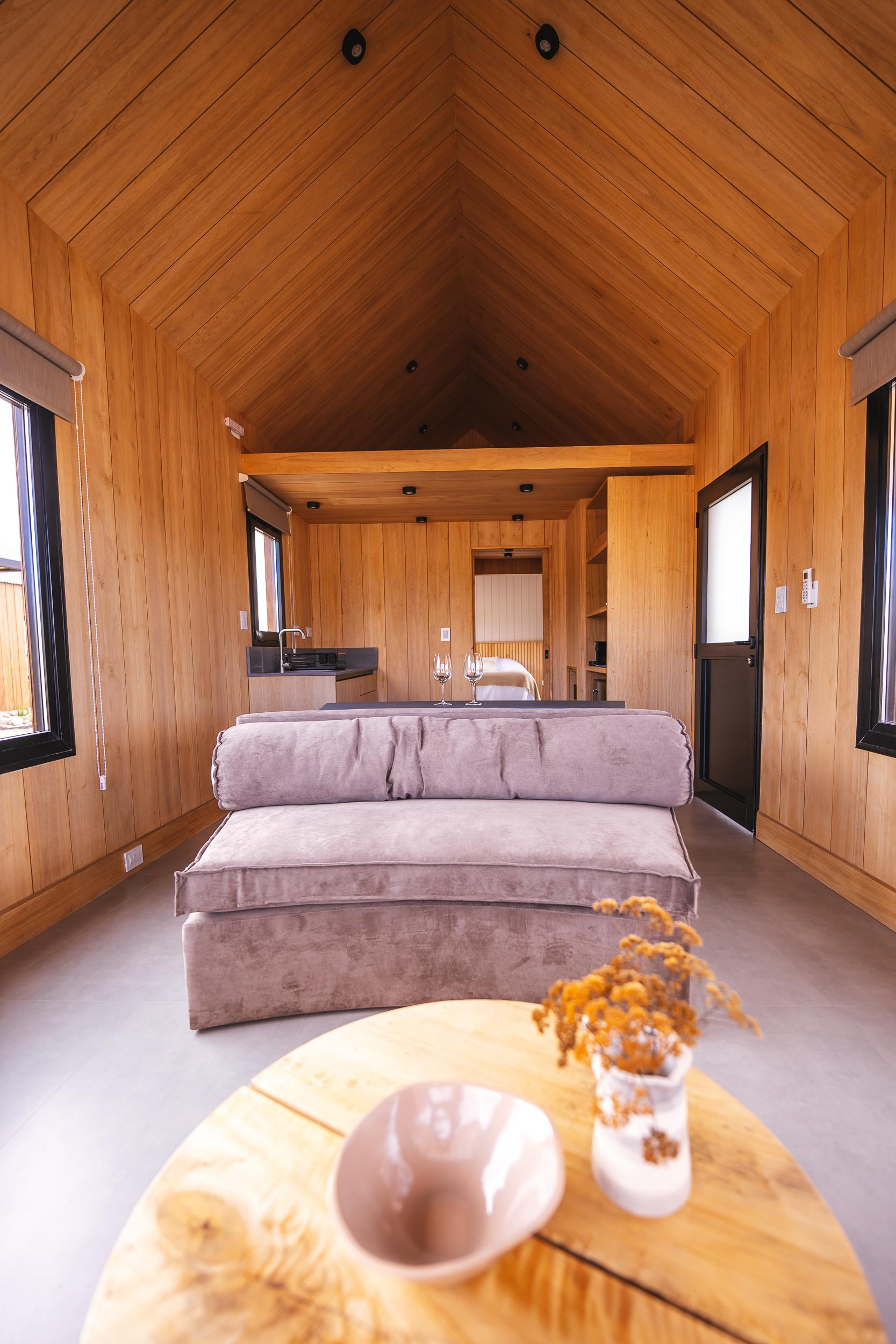 Son cálidos y modernos chalets privados de dos ambientes (1 dormitorio), ubicados a solo 150 metros del edificio principal, rodeados por la inmensidad del viñedo Los Arbolitos y el aire puro de la cordillera andina.